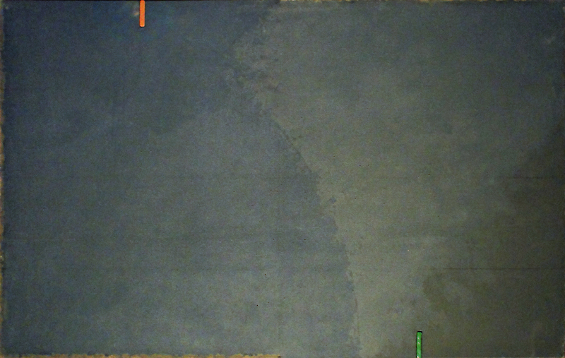 ''Penlan Fawr 1: Plans For A Derelict Building'' Earth (above Cwmystwyth, Mid Wales) and paint on canvas, with Rowan and wax rectangles. 58cms x 92cms. Three pieces.