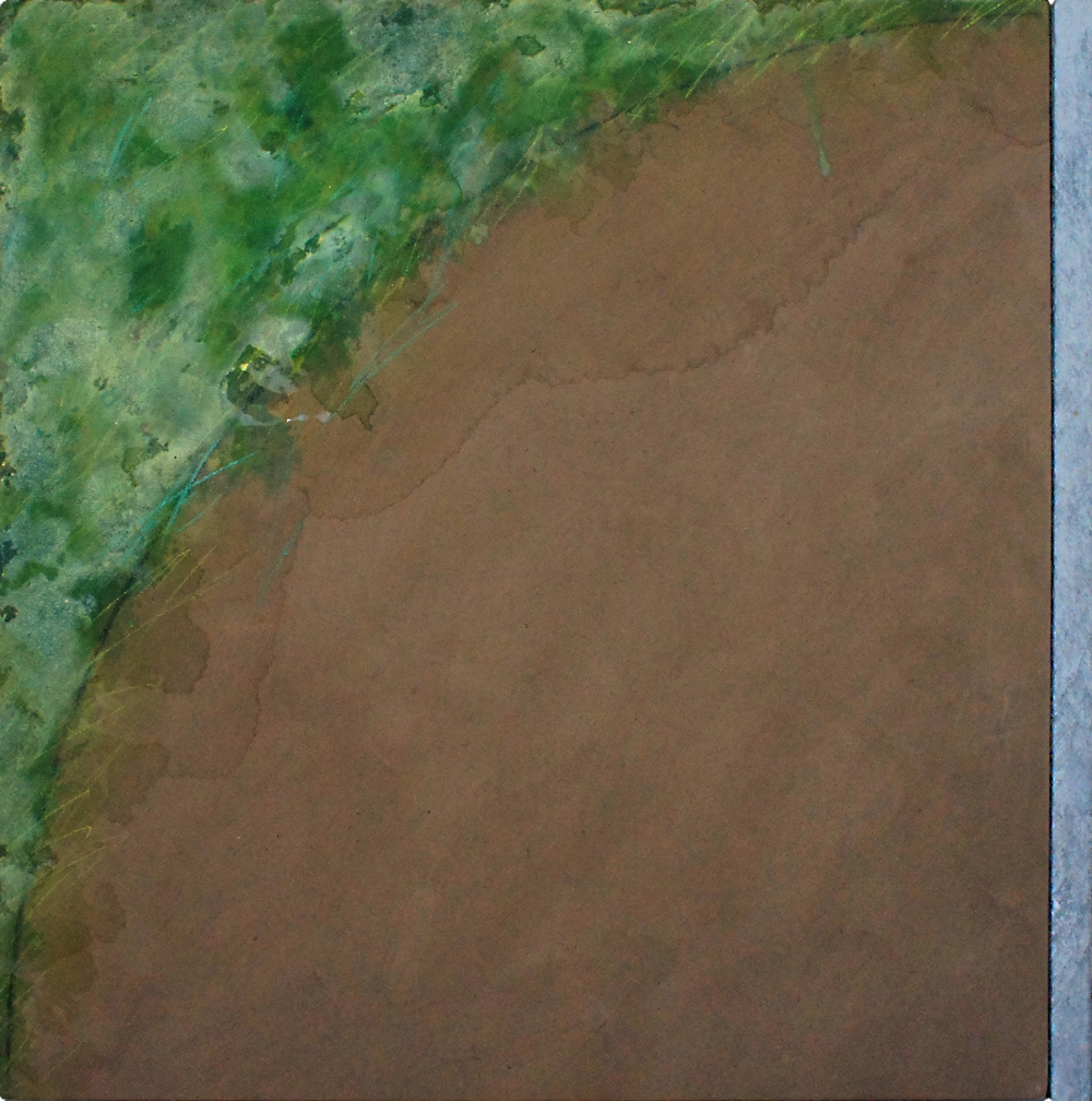Panel 1: Earthstain on canvas, with charcoal, paint, and lakeland slate. 60cms x 60cms x 5cms. August 2013