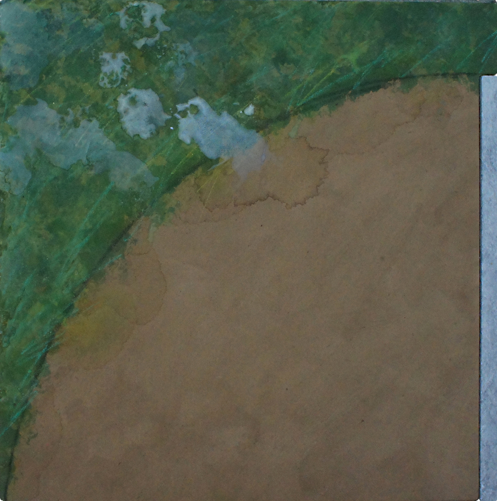 Panel 2: Earthstain on canvas, with charcoal, paint, and lakeland slate. 60cms x 60cms x 5cms. August 2013