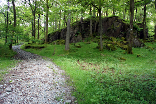 Earth for the second panel was collected in Dalt Wood, not far from the disused quarry where walls of oddly coloured slate are reflected in the still waters below.