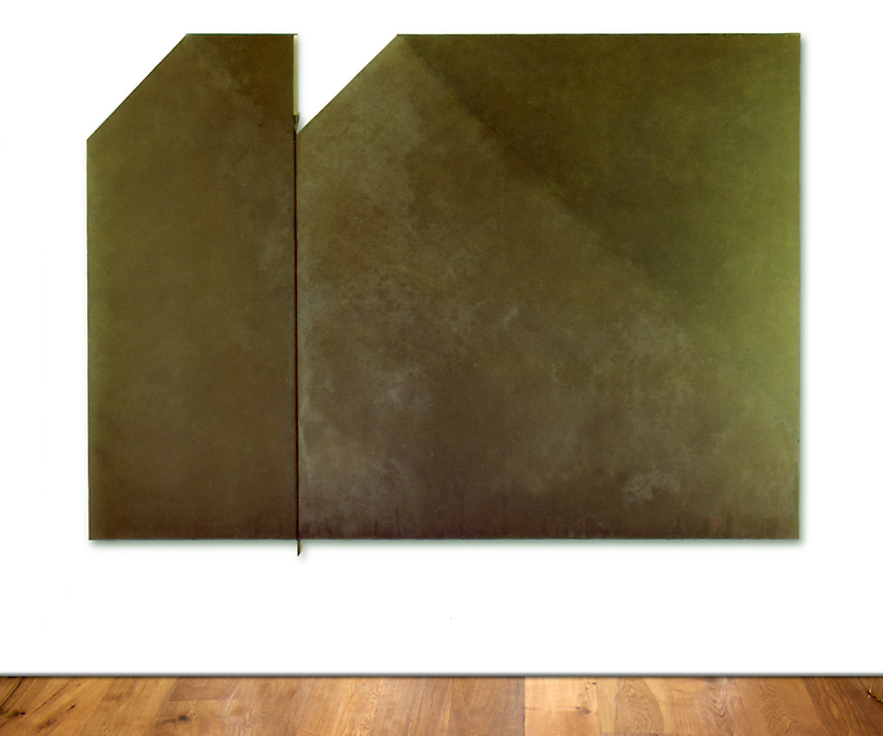 Earth (above Cymystwyth, Mid Wales) and paint on canvas, with two slate spacers.