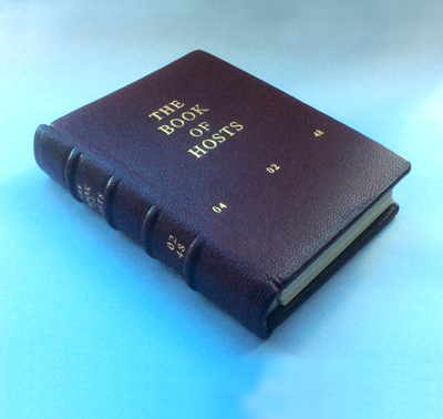 ''The Book Of Hosts'' Small leather book with pages made from consecration wafers. 21cms x 14cms x 12cms.